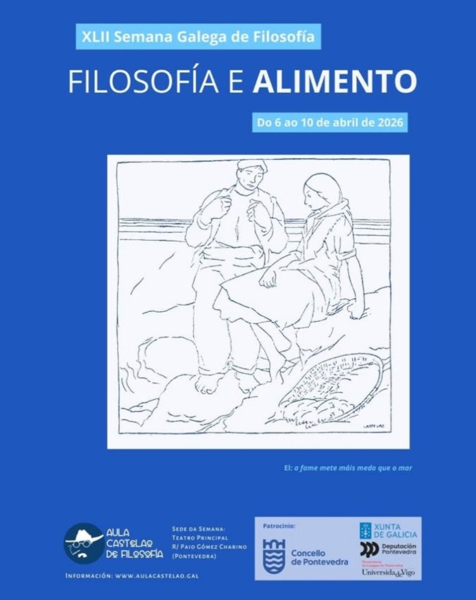 La XLII Semana Gallega de Filosofía tendrá lugar en Pontevedra del 6 al 10 de abril de 2026, organizada por la Aula Castelao de Filosofía. En esta edición, el enfoque será el tema Filosofía y Alimento, que permitirá explorar las interacciones entre la filosofía y la alimentación en diversas dimensiones. Las actividades se llevarán a cabo en el Teatro Principal de Pontevedra.