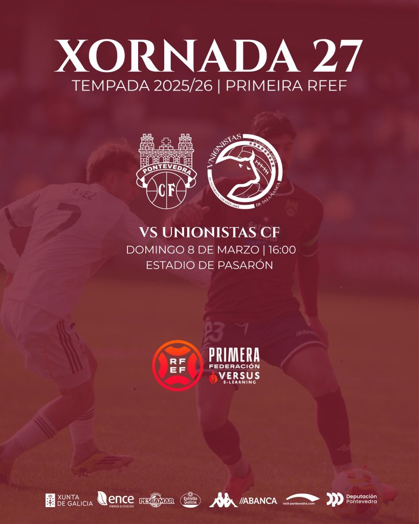 O Pontevedra CF enfrontarase ao Unionistas CF nun encontro correspondente á xornada 27 da tempada 2025/26 da Primeira RFEF. Este